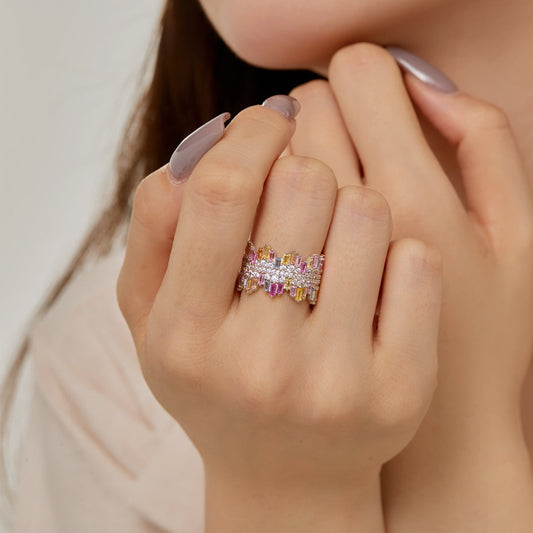 [Nova Jewelry]Ornate Colorful Radiant Cut Daily Ring